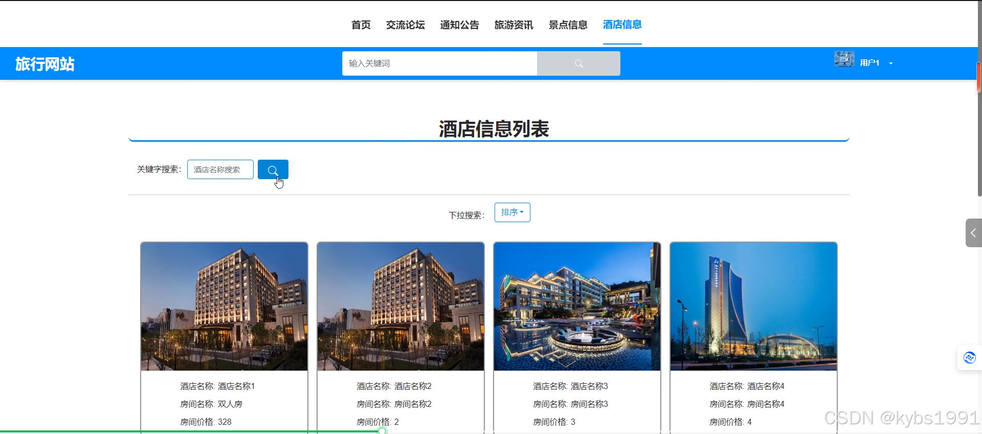 - 酒店信息:用户可以查看酒店信息列表中的某一酒店的详细信息并可以进行预订、点赞、收藏和发表评论操作。
