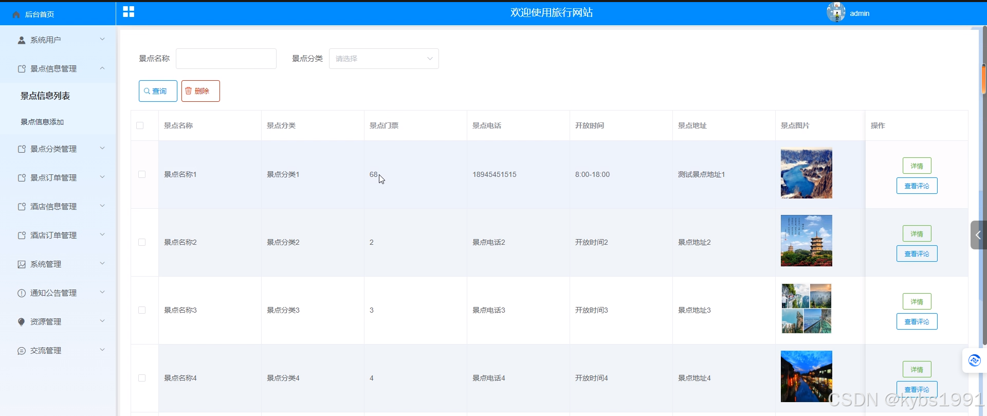 图5-10景点信息管理界面图