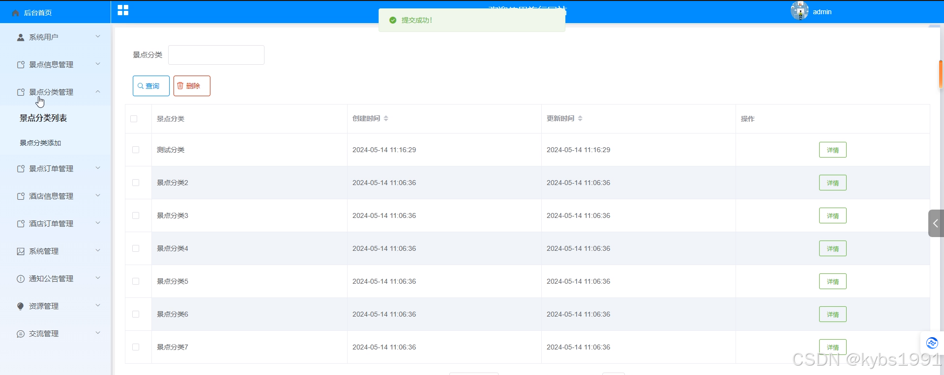 图5-11景点分类管理界面图