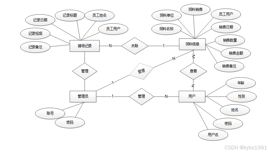 下面是整个猪场信息管理系统中主要的数据库表总E-R实体关系图。