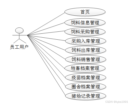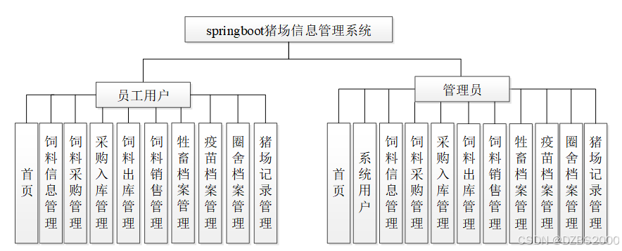 猪场信息管理系统可以划分为注册员工用户和管理员模块两大部分。