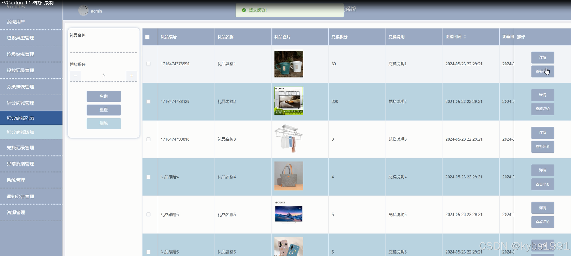 管理员可以管理积分商城,包括添加新的奖品、修改奖品信息、审核兑换申请等。积分商城管理界面如下图所示。