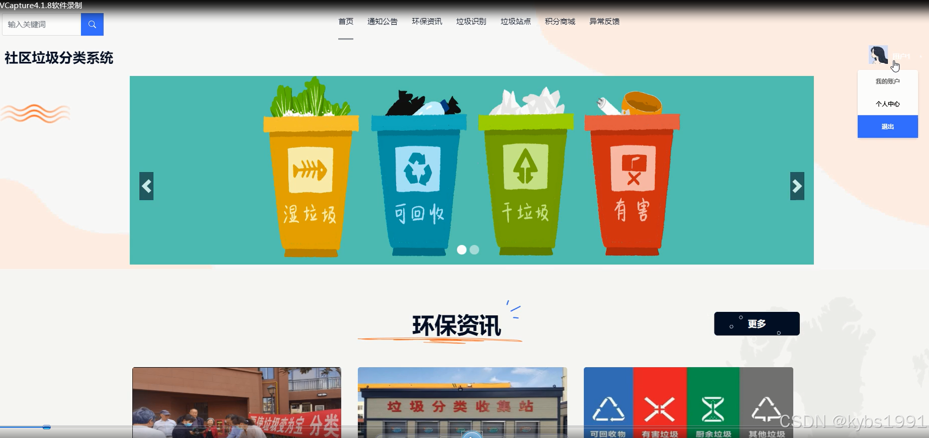 首页:登录后,社区用户可以进入系统首页,查看最新的通知公告、环保资讯以及其他相关内容。
