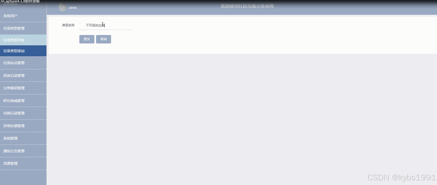 垃圾类型管理:管理员可以管理系统中的垃圾类型,包括添加新的垃圾类型、修改垃圾类型信息、删除垃圾类型等。