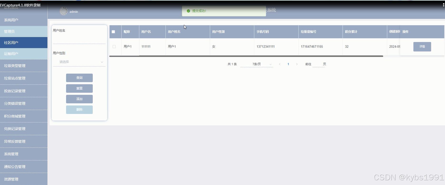 投放记录管理:管理员可以查看和管理用户的垃圾投放记录,包括审核投放记录、导出记录等。