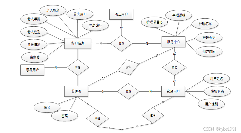 管理员的后台管理模块主要是对前台的注册养老用户和后台的护工用户、领导用户及管理员进行账户信息管理,同时对系统的用户管理问卷调查、护理项目、客户信息、护理计划、护理记录、护理评价等信息进行管理。管理员用例图如下所示。