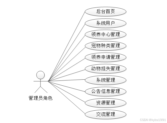 | 用例描述 | 管理员正确登录后台管理的条件下,对领养中心模块进行管理 |