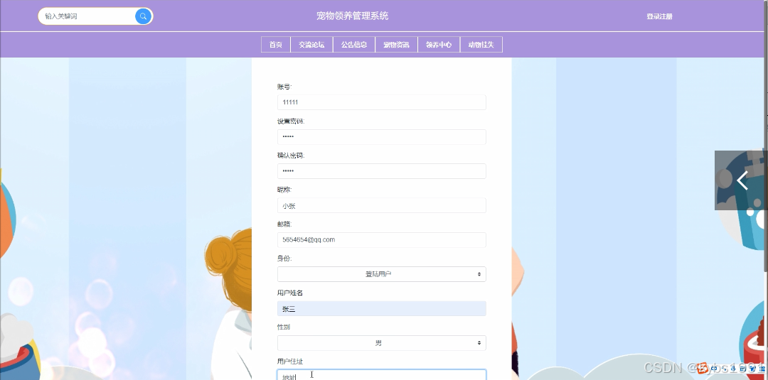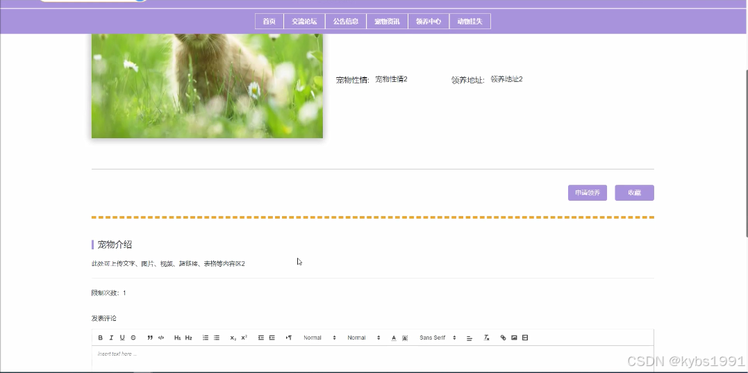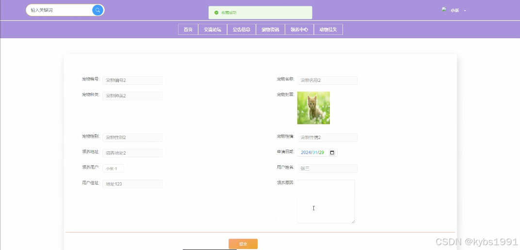 领养申请模块:包括前台的领养申请和后台的领养申请管理,前台让用户申请领养,后台查看领养申请情况。