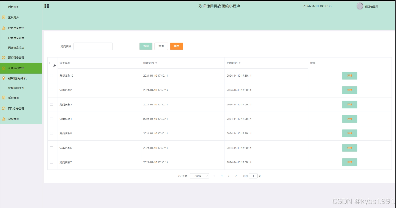 (3)民宿信息管理:点击“民宿信息管理”按钮会显示出所有的民宿信息,支持对民宿信息的增删改查操作。