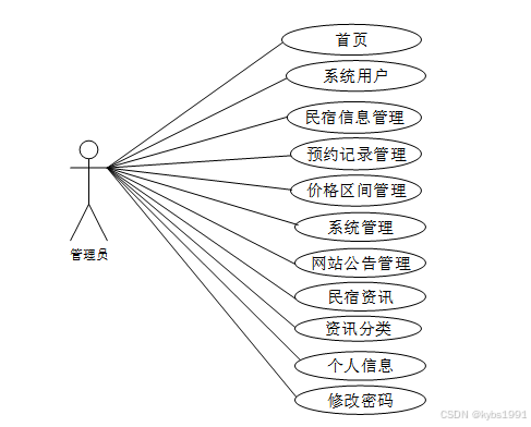 图2-3 基于微信小程序的民宿预约系统管理员角色用例图