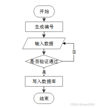 用户成功登入系统后就能够实现增加数据的操作,增加数据的编号由系统生成,用户不能随意填写,除了编号以外,其他增加信息用户自己填写,填写后的信息经过系统验证,验证通过后即可完成数据新增,数据新增的流程图如下图2-1所示。