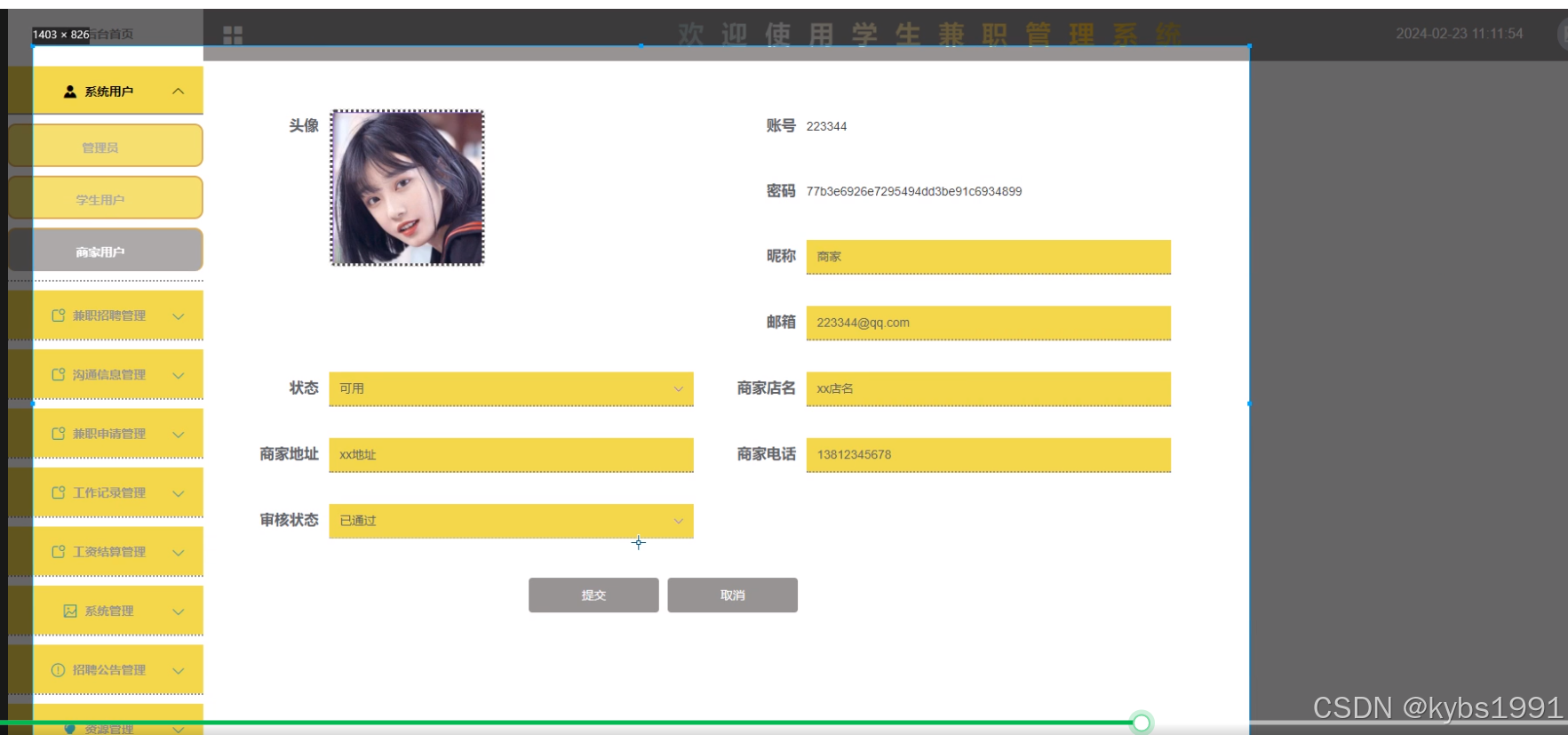 兼职申请: 商家用户可以查看收到的兼职申请,并进行处理和安排。
