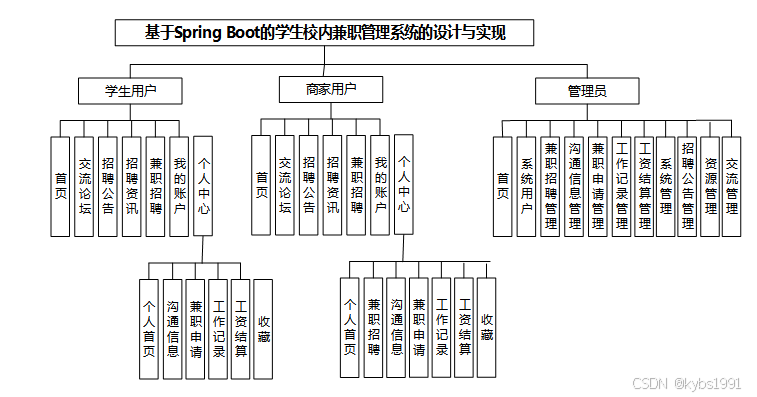 基于springboot技术的学生校内兼职管理系统的设计与实现,系统分为学生用户、商家用户和管理员用户这三大部分,具体需求分析如下: