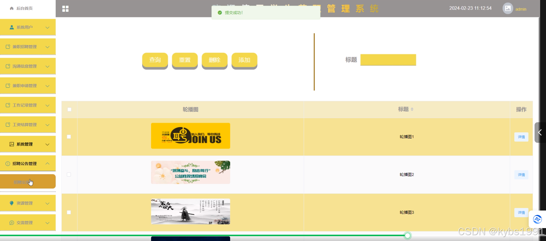 系统管理: 包括轮播图管理,管理员可以管理系统首页的轮播图内容,保持页面的美观和信息更新。