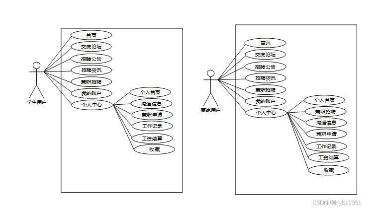 学生校内兼职管理系统中学生用户角色用例图如图2.1所示: