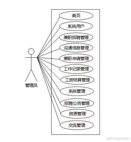 学生校内兼职管理系统中管理员用户用例图如图2.2所示: