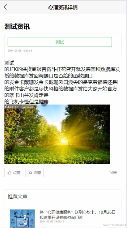 | 评论功能模块测试 | 心理资讯正常的显示 | 浏览心理资讯详情信息 | 点击“心理资讯”进入心理资讯详情页面,点击“评论”输入自己的评论内容。 | 评论成功 | 正确 |
