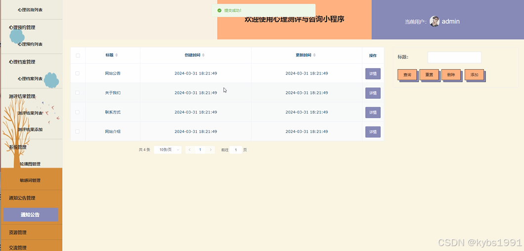 资源管理: 管理系统的心理资讯和资讯分类,包括发布、分类和管理等。