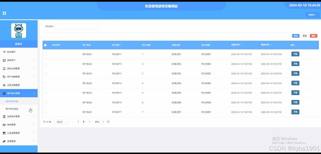 用户积分管理: 管理用户在网站上的积分情况,包括奖惩和兑换等。