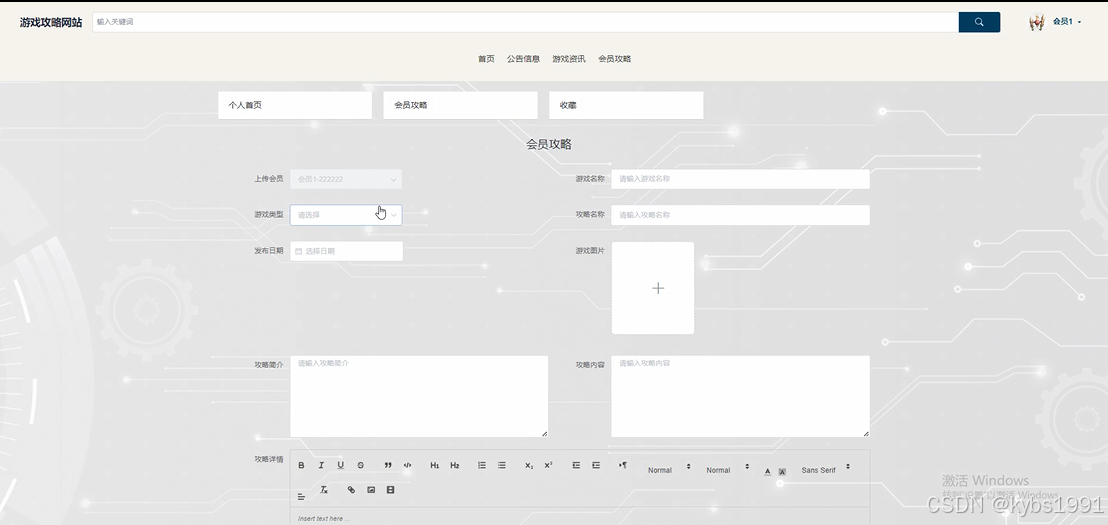 会员攻略管理: 管理会员发布的专属游戏攻略,包括审核、编辑和删除攻略。
