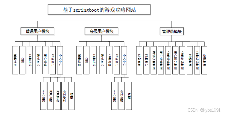 按照基于springboot的游戏攻略网站的角色,系统划分为了普通用户模块、会员用户模块和管理员模块这三大部分。