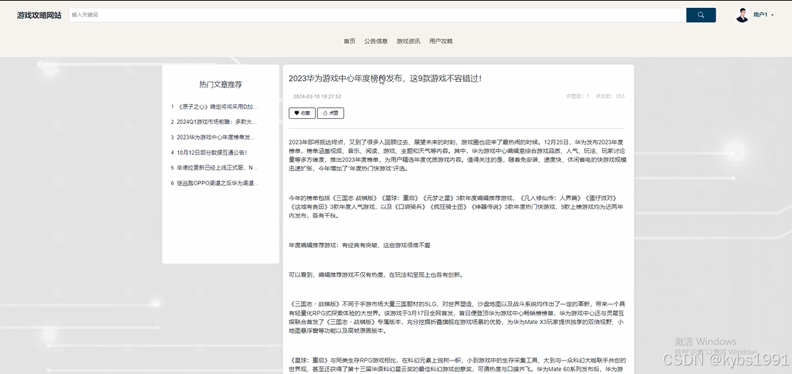 The design and implementation of this game strategy website not only provides a comprehensive and convenient game strategy platform for gamers, but also provides an effective promotion channel for game developers. Users can browse the latest game guides through the website, share their gaming experience, participate in strategy discussions, and enhance the gaming experience.