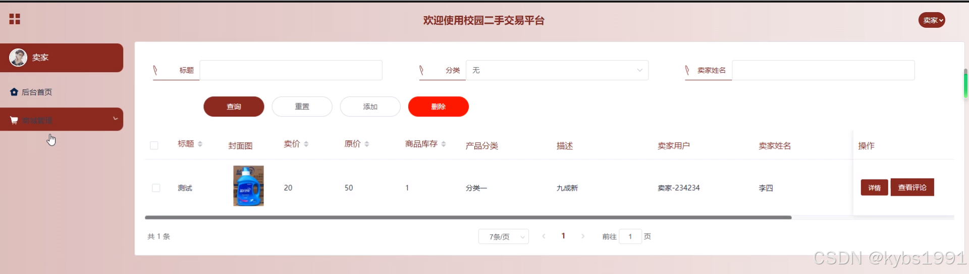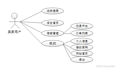 - 注册登录:卖家可以在后台通过注册成为系统用户,注册后可以用账号密码登录系统。