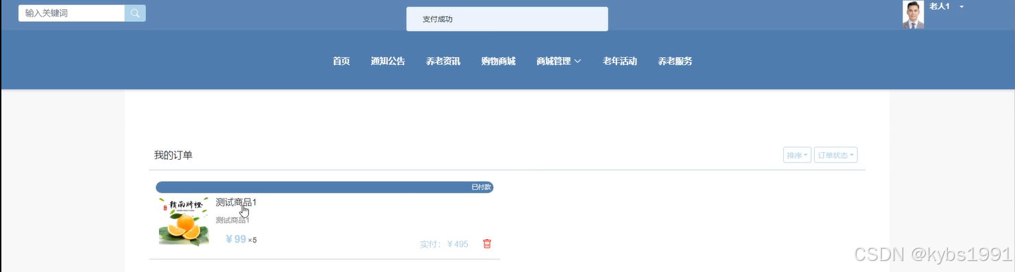 (5)我的订单:用户在提交订单后,可以对提交的订单进行管理。