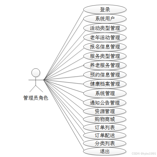 web后台管理上的管理员是维护整个智慧养老服务平台中所有数据信息的。管理员角色用例如图2-4所示。