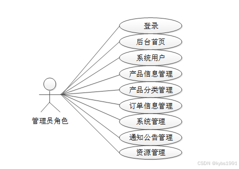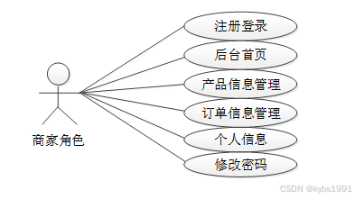 web后台管理上的管理员是维护整个农产品销售系统中所有数据信息的。管理员角色可商家角色用例如图2-4-2-5所示。