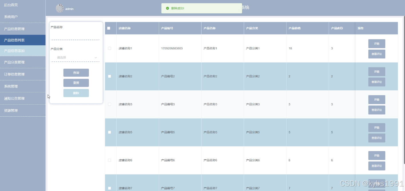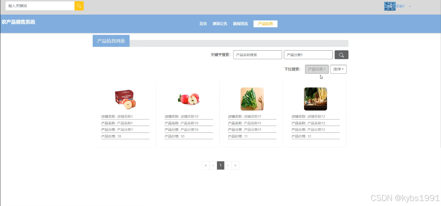 农产品销售系统中的管理人员是可以对不同产品信息进行维护和管理的,支持增删改查操作。产品信息管理界面如下图4-10所示。