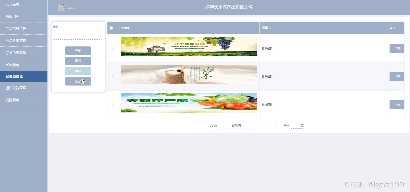 (3)系统管理:管理员点击“系统管理”菜单可以对首页展示的轮播图信息进行增删改查。