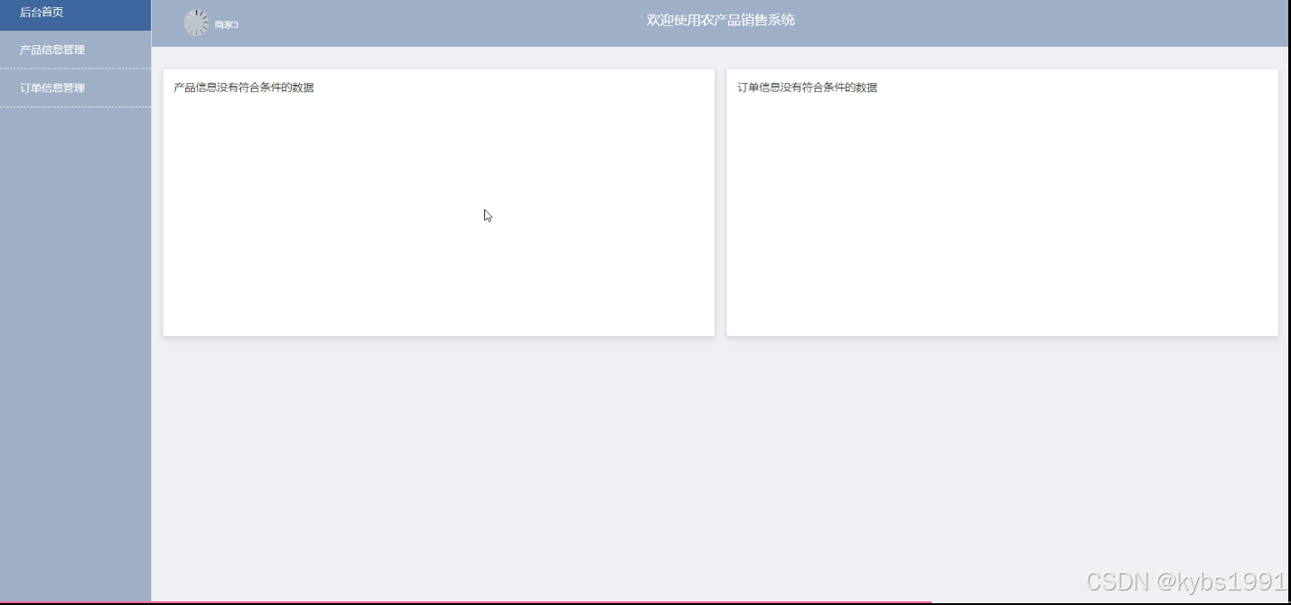 (2)后台首页:商家用户可以查看,自己的产品信息统计、订单信息统计。