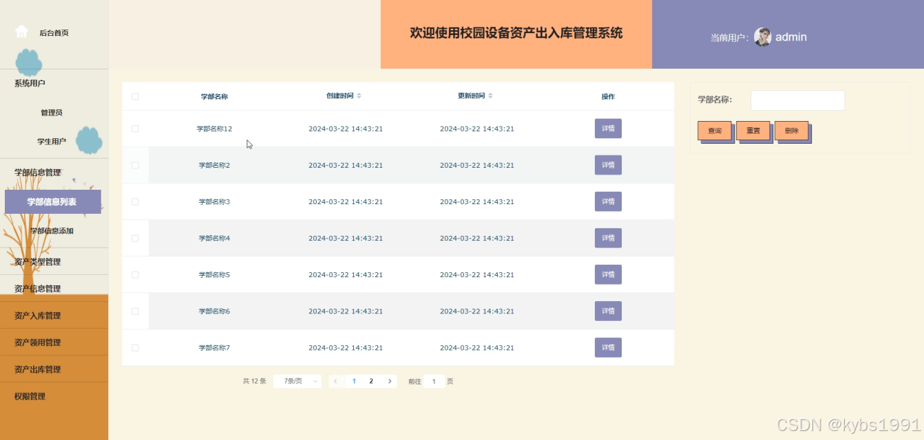 - 学部信息管理:管理员可以对所有的学部信息进行维护管理,并支持增删改查的操作。