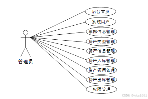 校园设备资产出入库管理系统管理员角色用例图,如下图: