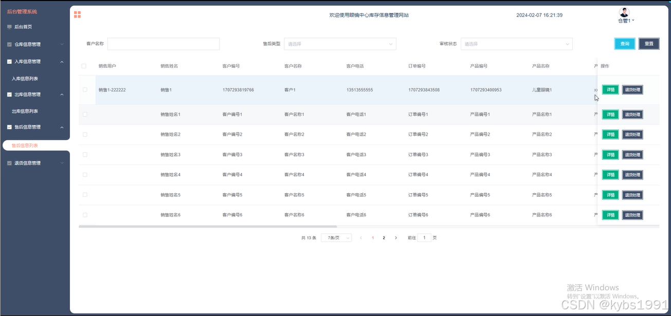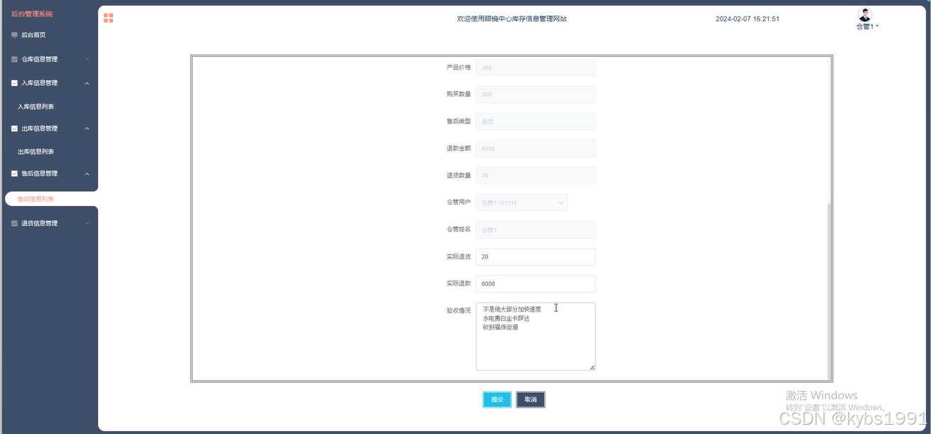 图5-7售后信息管理界面图