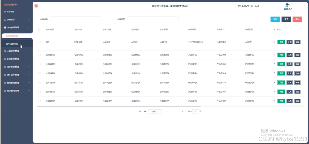 关键词:眼镜中心库存信息管理网站;springboot框架;Vue.js