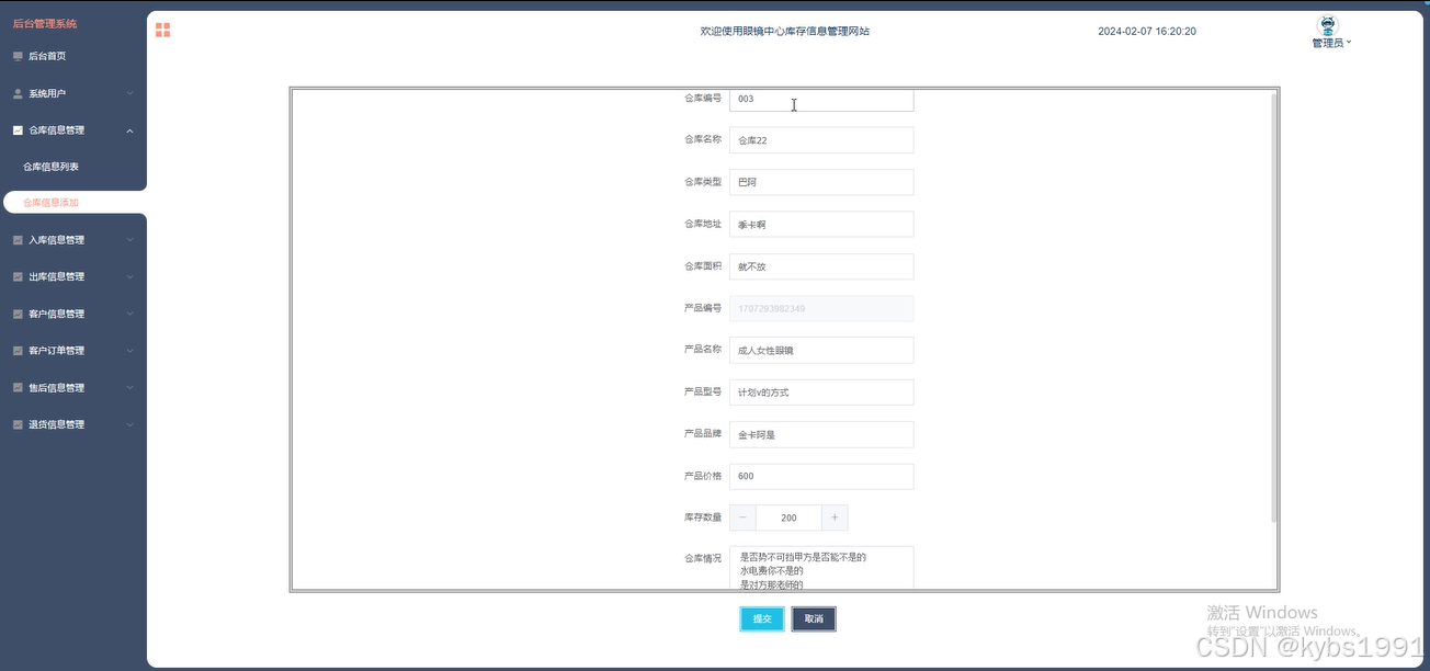 图5-5添加仓库信息界面图