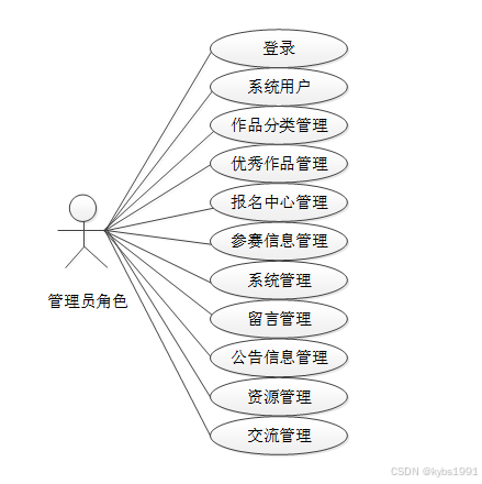 SSM 绘画比赛管理系统管理员角色用例图如图2.2所示: