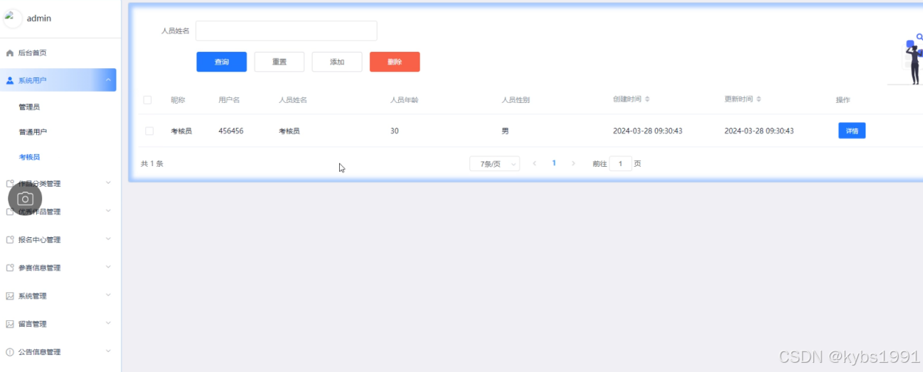 - 系统用户:管理员可以对系统的用户信息进行增删改查操作。