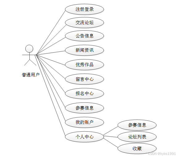 SSM 绘画比赛管理系统中普通用户角色用例图如图2.1所示:
