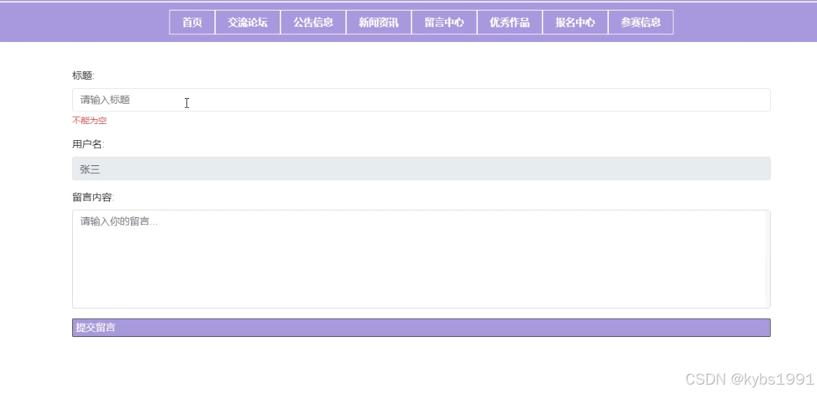 The system is divided into two roles of ordinary user user, examiner and administrator through roles, of which ordinary users have the following main functions: registration and login, home page, communication forum, announcement information, news information, message center, excellent works, registration center, entry information, my account and personal center; Communication management: The functions of the examiner are: competition information management and communication management.
