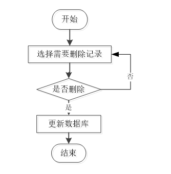用户可选择要删除的信息进行信息删除操作,在删除信息时系统提示是否确定删除信息,是则删除信息成功,系统数据库将信息进行删除。删除信息流程如下图所示。