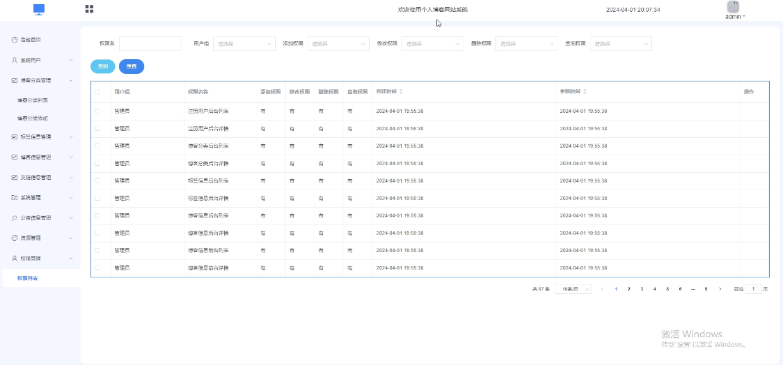 - 权限管理:管理员可以对用户组权限进行查询和管理,修改用户组增改删查的权限。