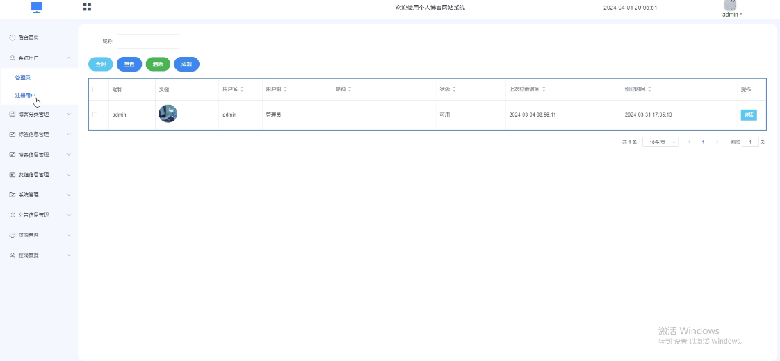 - 系统用户:管理员可以查阅和管理系统用户信息,包括管理员和注册用户的添加、修改、删除、查阅等操作,确保系统的安全性和用户身份管理。