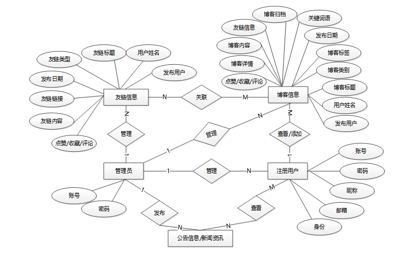 下面是整个个人博客网站系统中主要的数据库表总E-R实体关系图。