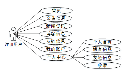 个人博客网站系统中注册用户角色用例图如图2.1所示: