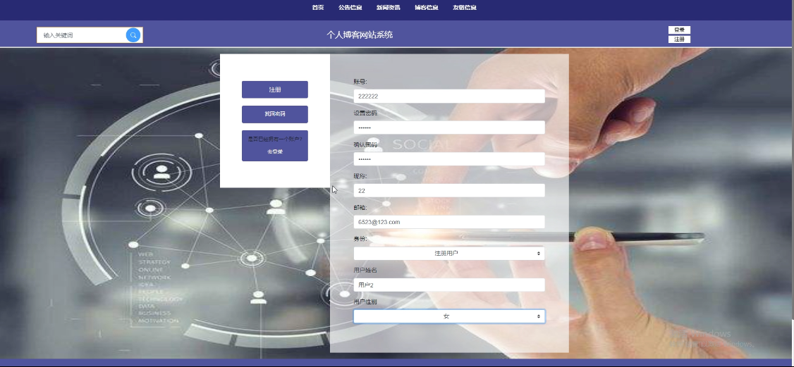 | 输入完整正确的博客信息 | 提示“添加成功”,并进入系统 | 预期结果 |