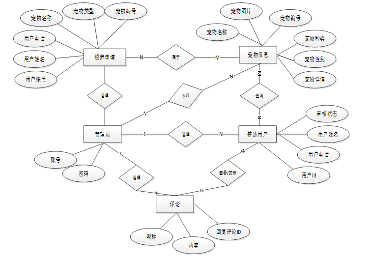 通过2.3功能的分析,得出了本流浪宠物信息管理平台的用例图: