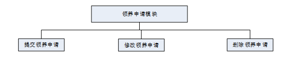流浪宠物信息管理平台最重要的一个功能就是领养申请,其模块功能结构,具体的结构图如下: